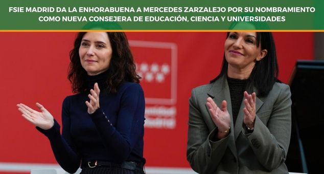 Tras el anuncio oficial realizado ayer, 16 de febrero, sobre el nombramiento de Mercedes Zarzalejo Carbajo como nueva Consejera de Educación, Ciencia y Universidades de la Comunidad de Madrid, FSIE Madrid ha querido trasladar su enhorabuena formal y su disposición al diálogo con la nueva responsable de la cartera educativa.