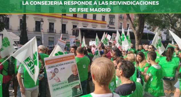 Tras el lanzamiento de la convocatoria de movilizaciónes en la Educación Concertada, iniciado por FSIE Madrid y apoyado por el resto de sindicatos, el Consejero de Educación Emilio Viciana ha anunciado que los profesores de la concertada podrán jubilarse parcialmente con contrato de relevo financiado por la Comunidad de Madrid.
