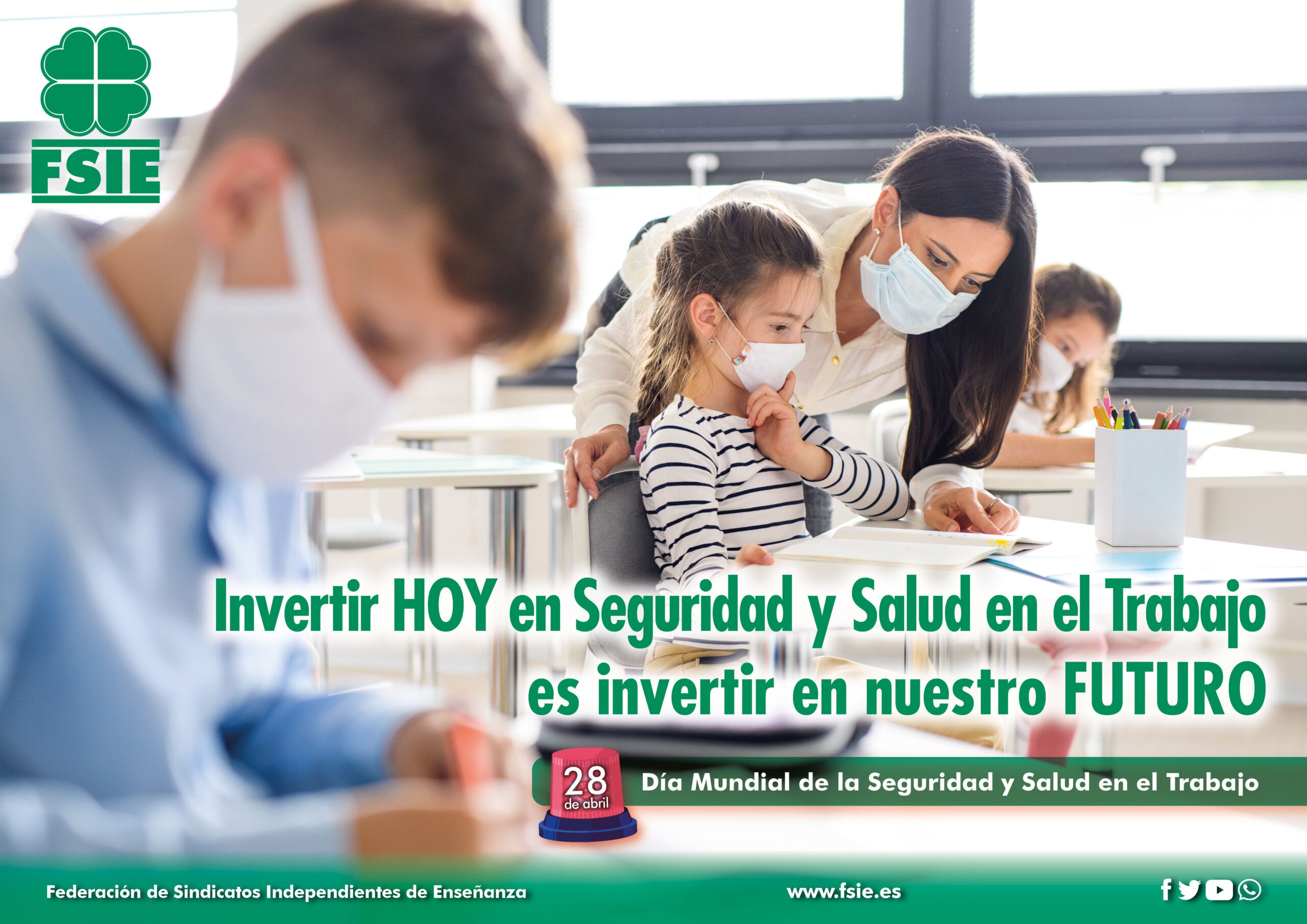 La Federación de Sindicatos Independientes de Enseñanza se suma un año más a la celebración del Día Mundial de la Seguridad y Salud en el Trabajo poniendo el foco en las problemáticas que ha puesto de relieve la pandemia mundial. Como organización comprometida con la protección de la salud de los trabajadores, FSIE quiere aprovechar esta fecha conmemorativa para reivindicar la adopción de medidas urgentes que vengan a paliar las consecuencias derivadas de la crisis sanitaria y las medidas implantadas para contenerla.