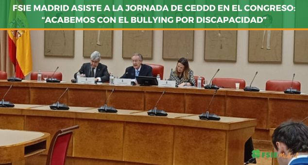 Ayer 25 de noviembre, FSIE Madrid, sindicato independiente de enseñanza concertada, privada y atención a la discapacidad, voz de miles de profesionales de centros de educación especial, aulas específicas y aulas TEA en centros ordinarios, asistió en las jornadas organizadas por el Consejo Español para la Defensa de la Discapacidad y la Dependencia (CEDDD) bajo el lema “Acabemos con el bullying: respuestas al acoso por discapacidad”, celebradas en la Sala Constitucional del Congreso de los Diputados.
