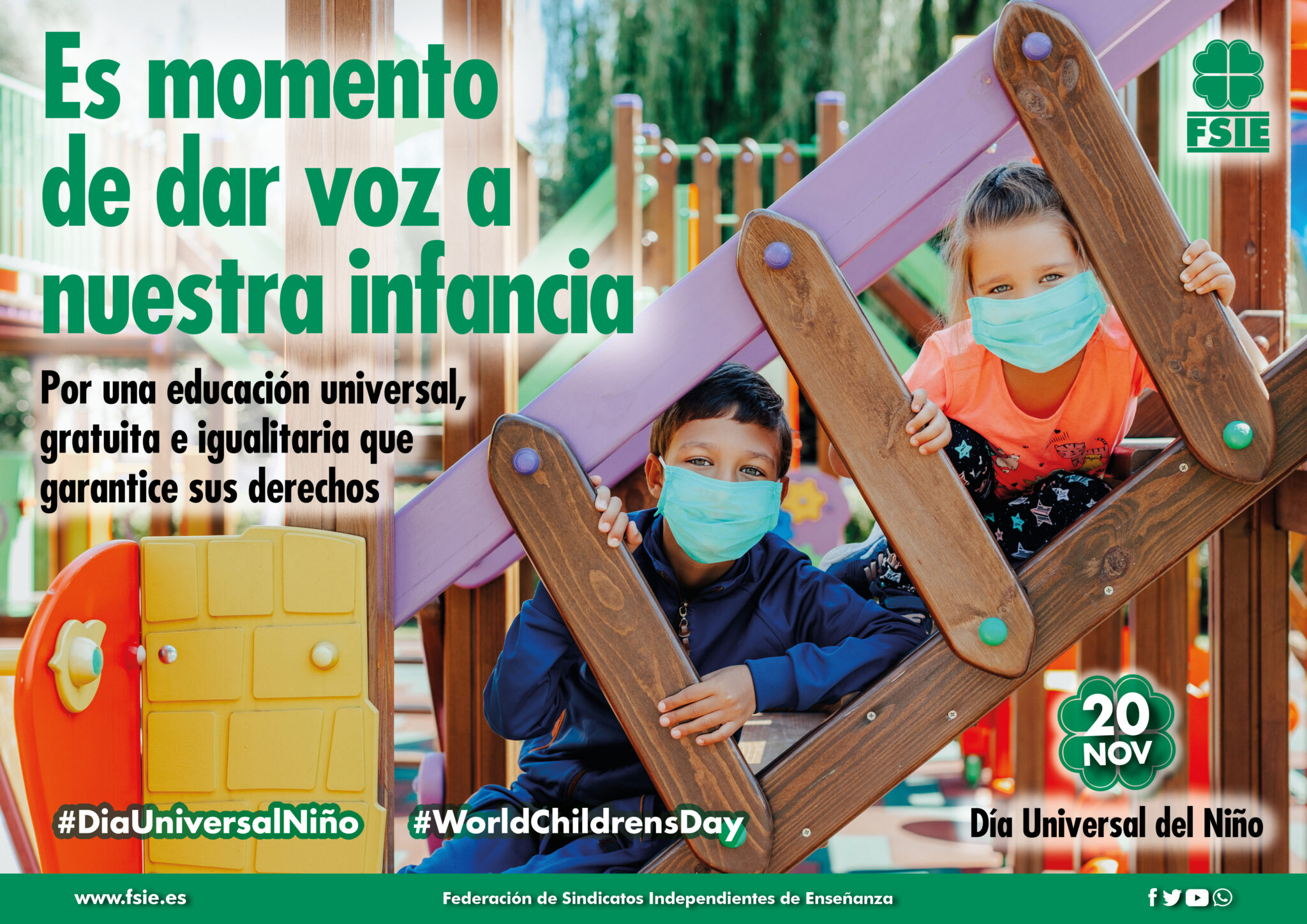 Con el fin de visibilizar esta problemática, el sindicato ha lanzado la campaña “Es momento de dar voz a nuestra infancia. Por una educación universal, gratuita e igualitaria que garantice sus derechos”, sumándose un año más a la iniciativa promovida por Unicef. Esta efeméride tiene como doble objetivo la conmemoración de la aprobación por la Asamblea General de la ONU de la Declaración de los Derechos del Niño, el 20 de Noviembre 1959, y la importante tarea de recordar a la ciudadanía que los niños son el colectivo más vulnerable y que más sufre las consecuencias de cualquier tipo de crisis.
