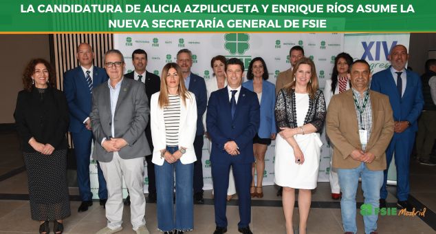 FSIE ha elegido nueva Secretaría General para los próximos cuatro años durante su XIV Congreso Federal, que se ha celebrado los días 2, 3 y 4 de abril en la ciudad de Alicante. Alicia Azpilicueta, presidenta de FSIE, ha sido reelegida en el cargo, y Enrique Ríos, hasta ahora secretario de acción sindical, es ya el nuevo secretario general de la organización.
