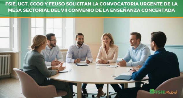 FSIE, UGT, CCOO Y FEUSO solicitan la convocatoria urgente de la Mesa Sectorial del VII Convenio de la Enseñanza Concertada