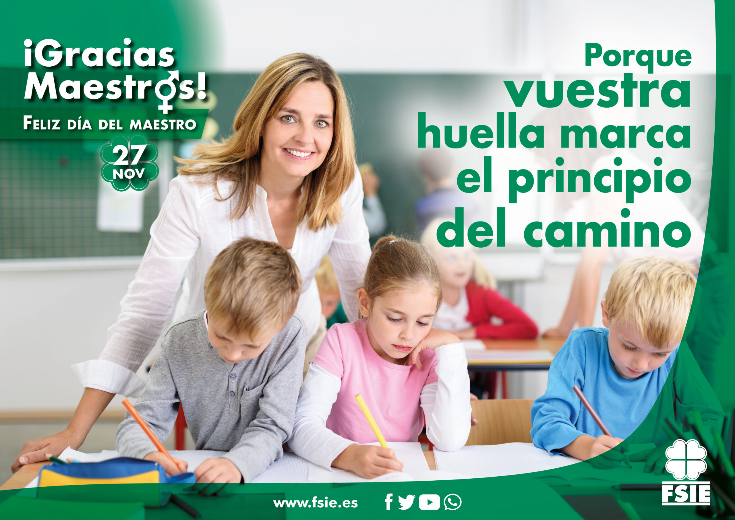 Este 27 de noviembre, Día del Maestro, la Federación de Sindicatos Independientes de Enseñanza quiere homenajear a todas las maestras y maestros reconociendo la importancia del trabajo que desempeñan y agradeciendo su vocación y compromiso. Con la Campaña “Porque vuestra huella marca el principio del camino ¡Gracias Maestr@s!” se pretende además poner de relieve el gran impacto e influencia que tiene la labor docente en los primeros años de vida.